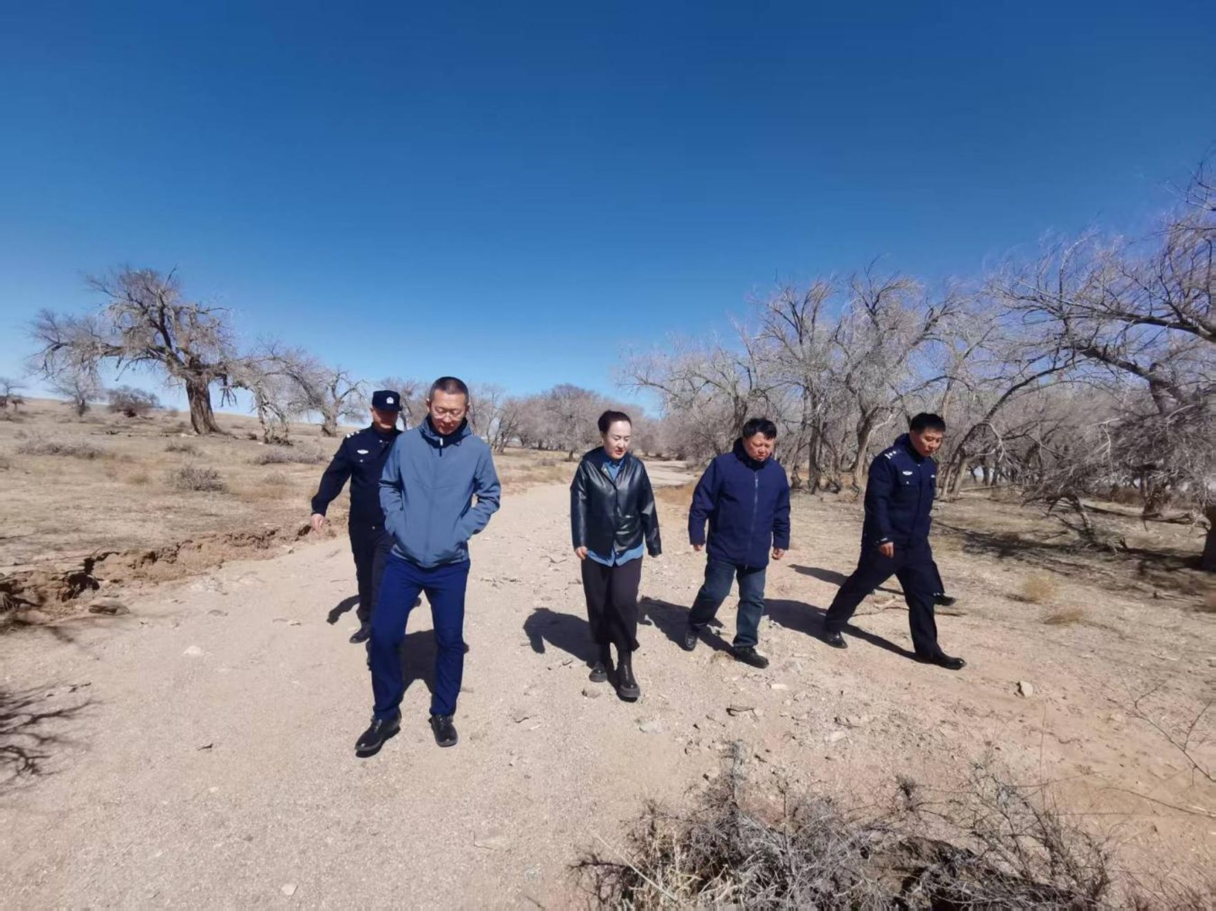 今年4月,苏尼特右旗人民检察院联合旗公安局环食药侦大队、旗林业和草原局、额仁淖尔苏木综合行政执法队等多部门组成巡查组,开展古树名木专项保护活动,同时邀请人大代表和政协委员见证参与,共同走访调研辖区内古树名木保护情况。巡查时发现,当地古榆树群因缺水正面临干枯的风险,这些古榆树树龄多在100至600年之间,是当地牧民的乡愁记忆,我院公益诉讼部门与旗林草局和苏木人大代表进行沟通,并对方案可行性多次论证,形成将附近水库水源引流到管护区内的浇灌方案,旗林草局组织人员进行施工引流,古榆树群得到及时浇灌。